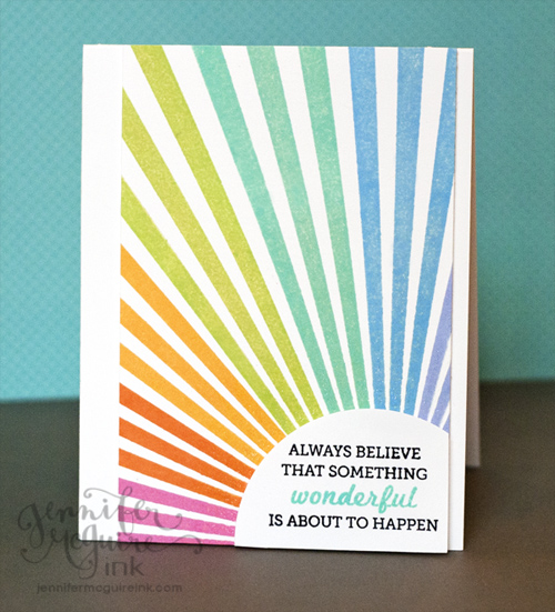 I just adore the new Mama Elephant Sunny Skies set. Those sunrays? Awesome! I decided to break the tradition of yellow and orange rays and instead go with a rainbow of sherbet colors.