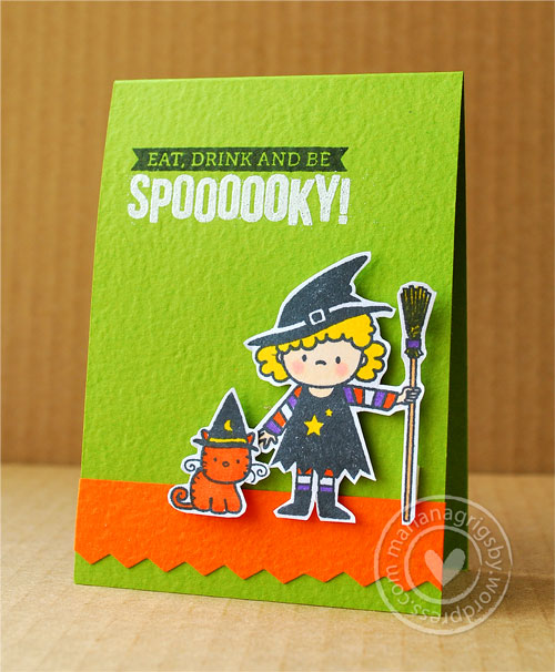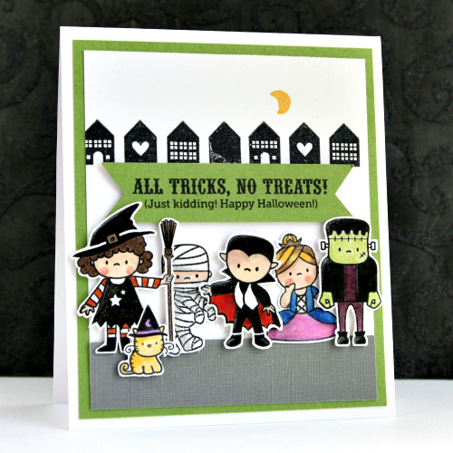Jenn used the house stamps from the Full House set to create a neighborhood for all of the adorable goblins to visit.