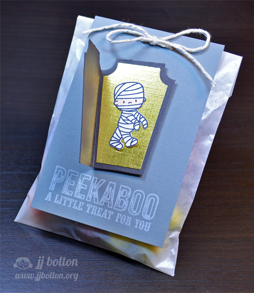 JJ used her Bootastic stamps to create a little goodie bag tag complete with scary mummy in a coffin!