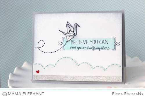 Elena created the coolest 3D origami crane to compliment the uplifting "true friend" sentiment. And I just love how she used the stitching on the cloud die to add more texture to her card.