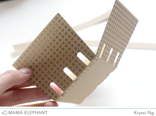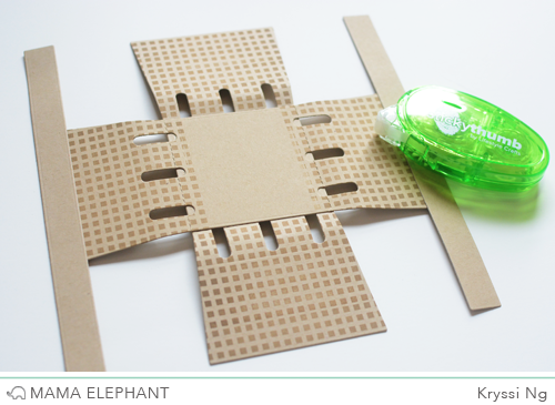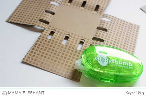 Now to shape the basket together, I use the Sticky Thumb adhesive runner and ran it on the top of each side first.