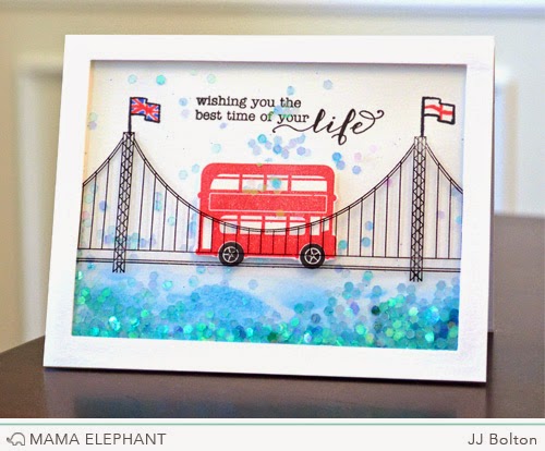 JJ created a fun shaker card with the Sightseeing set! I love the way the bridge is stamped on the acetate to give it more depth!