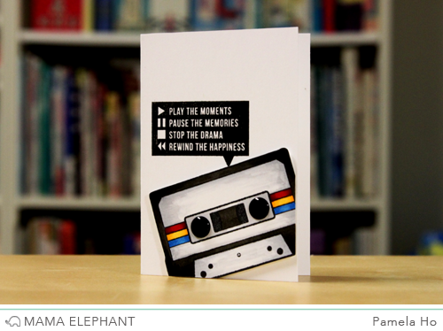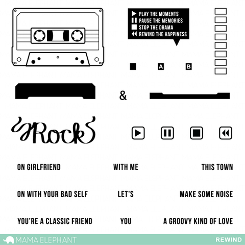 Rewind is today's stamp highlight. Let's make some noise and rewind back in time where we all donned our walkman and grooved to the music from our stacks and stacks of cassette tapes! This set will certainly bring a smile to those who would like to reminisce.