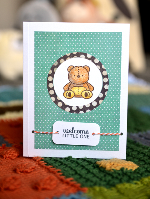aw!! what an adorable baby card!! love how it was colored in with pencils! it makes it feel so much more from the heart! and the blanket is gorgeous!! you can see the love wrapped around each stitch! wow!!