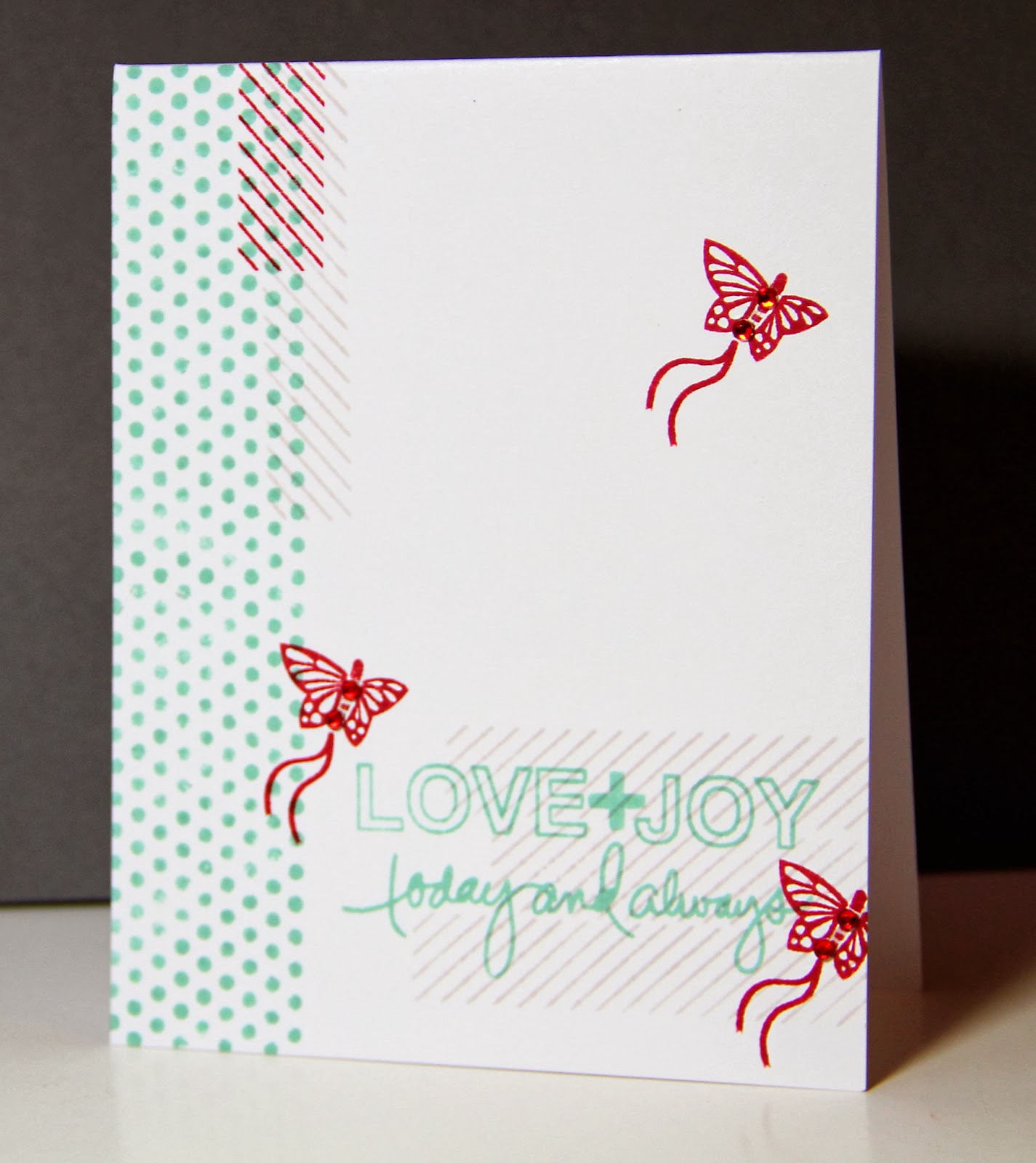 We also love this card by Michelle W. Those red gem butterflies seem to pop off the card! The composition of this card is just beautiful as well!