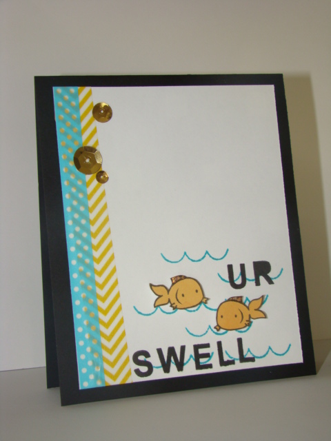 Our second pick is Samantha Mann! Samantha have been a loyal participant of our challenges (love that) and this time she really knocked it out of the park! She created more than one card for this challenge but this one really caught my eye. Love the colors and the gold sequins as bubbles. Clever!
