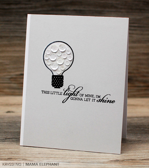 The white solid bulb didn't pop as much as I wanted to against the light gray cardstock so I added some satin white sequins on top with liquid glass adhesive. It made my CAS card so much more stunning if I do say so myself! :P Finally, I adhered the entire gray piece onto a white card base. Wah-la!