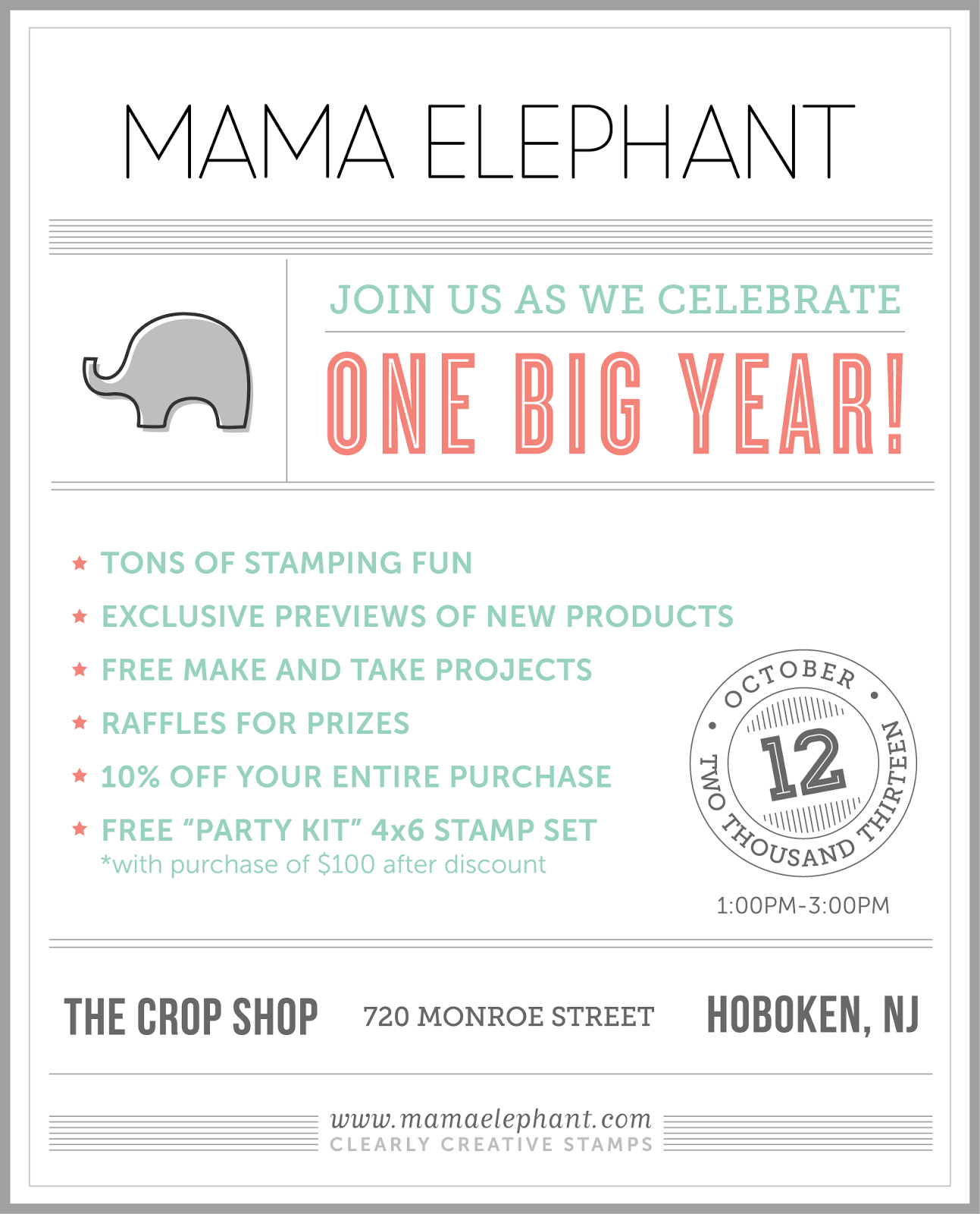 Mama Elephant will be hosting a party on Saturday, October 12 at The Crop Shop in Hoboken, New Jersey (psst! same area where Justin Timberlake recently filmed his mv for Take Back the Night, lol!) If you're in the area, please stop by and join us! Angela and I would love to meet you!