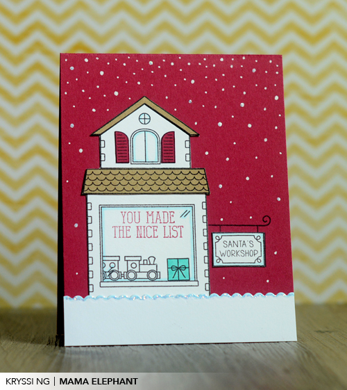 I created the falling snow by drawing them in with one of the new white pens we're carrying. It is so opaque and vibrant, I love it!