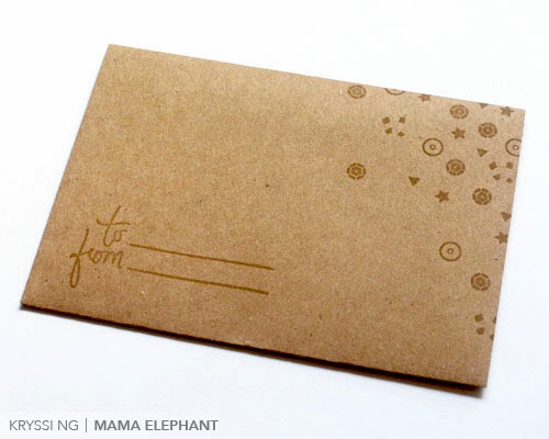 My first project, I immediately want to dress up an envelope instead of make a card. I took a kraft envelope and got busy with the stamps from Confetti. I used our Hazel ink to stamp on top of kraft, it is soooooooooo pretty -- the tone on tone stamping!