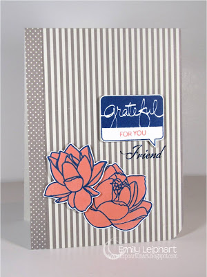 On the 3x4 card below, I embossed the mum onto the misted background, blended in some brick red distress ink to give it some depth and added a few pink enamel dots: