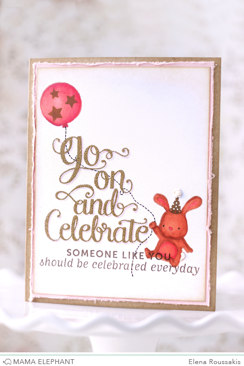 Elena double-stamped the happy birthday sentiment: once in our blush ink, and then embossed in gold over the top. The shadow effect is