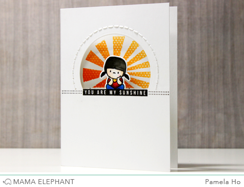 With some simple partial cutting, Pamela made the sunburst background peak out from the inside. How fun is that ombre stamping!