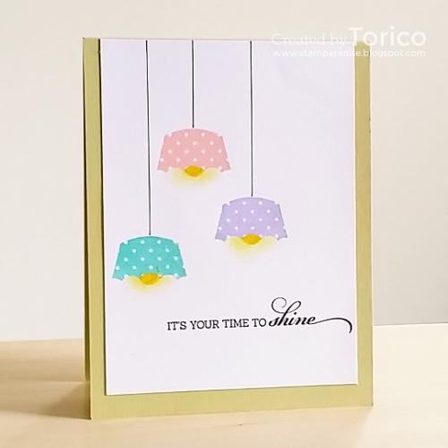 For my second card I turned a cupcake wrapper from the Carnival Cupcakes set into a lamp shade. Can you guess what image I used for the light bulbs? -- Cherry!:)