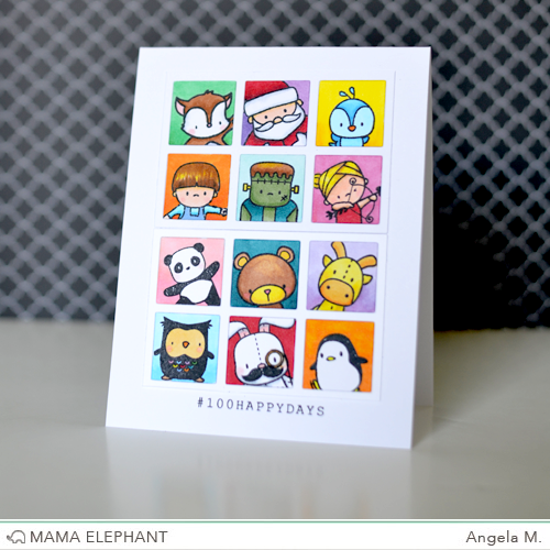 Here is the card I made which makes me so happy! I used the Peek a Frame Creative cuts for the frames. I then stamped the images on the squares and practiced my Copic Coloring on these cuties!